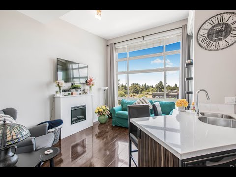 Welcome to 223rd North! Come checkout this unique, lovely 1 Bed Studio Penthouse in Downtown Maple Ridge with up to 14ft vaulted ceilings! Built in 2013, this unit come with White Quartz Countertops, Stainless Appliances, luxury thick dark mahogany coloured laminate flooring, built-in Electric fireplace & a Strata Approved professionally installed Air-Conditioning/heat-pump unit to keep you cool in the summer and warm in the winter. Unobstructed South, South-West, North-West views. In-suite Laundry and tons of closet space for all your belongings. Absolutely in perfect condition. An ultimate walk-score of 96 with Walmart, Haney Place Mall, Acts Centre, Leisure Centre, Club 16 Fitness, Banks and Restaurants with Beckett/Dog Park 100m away. * OPEN HOUSE SAT & SUN 1pm-2pm (Sept 20th/21st) *